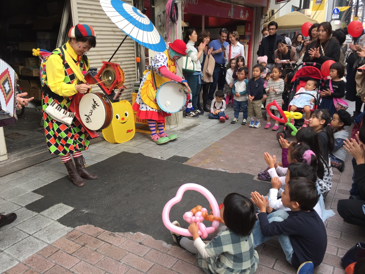 円頓寺パリ祭りにてチンドン屋さんに見入る子供達