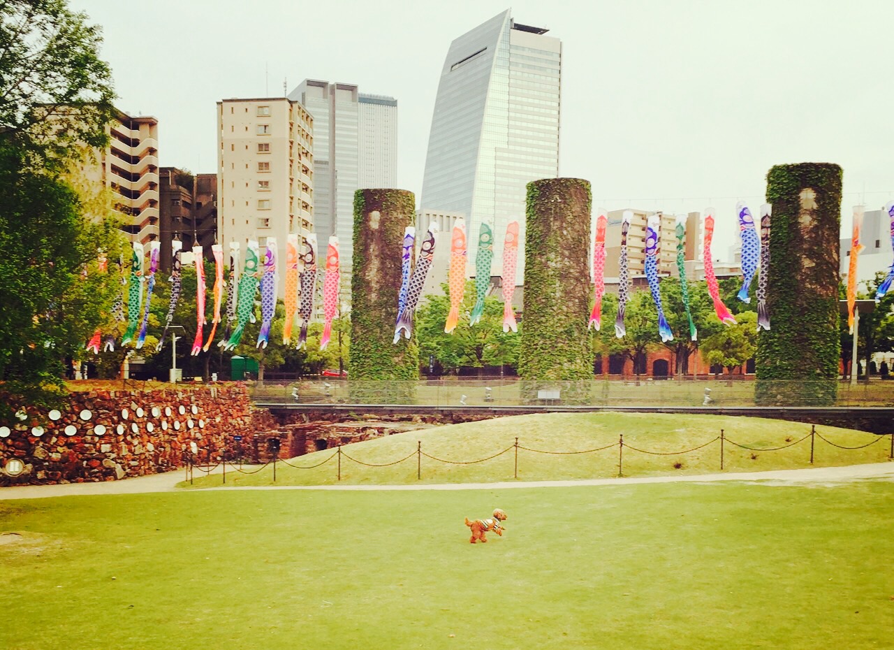 ノリタケの森から雄大に泳ぐ鯉のぼりと都会の迫力