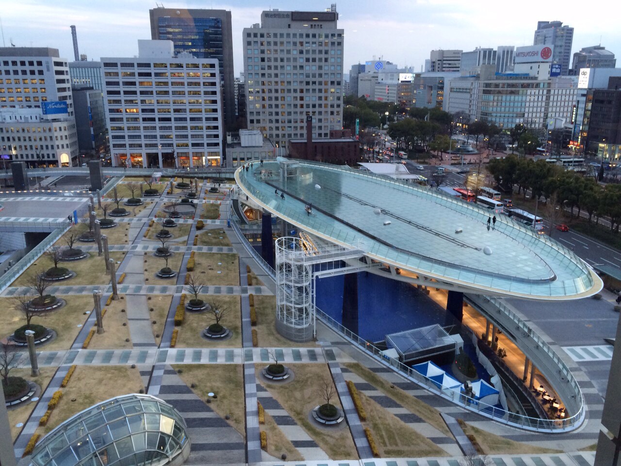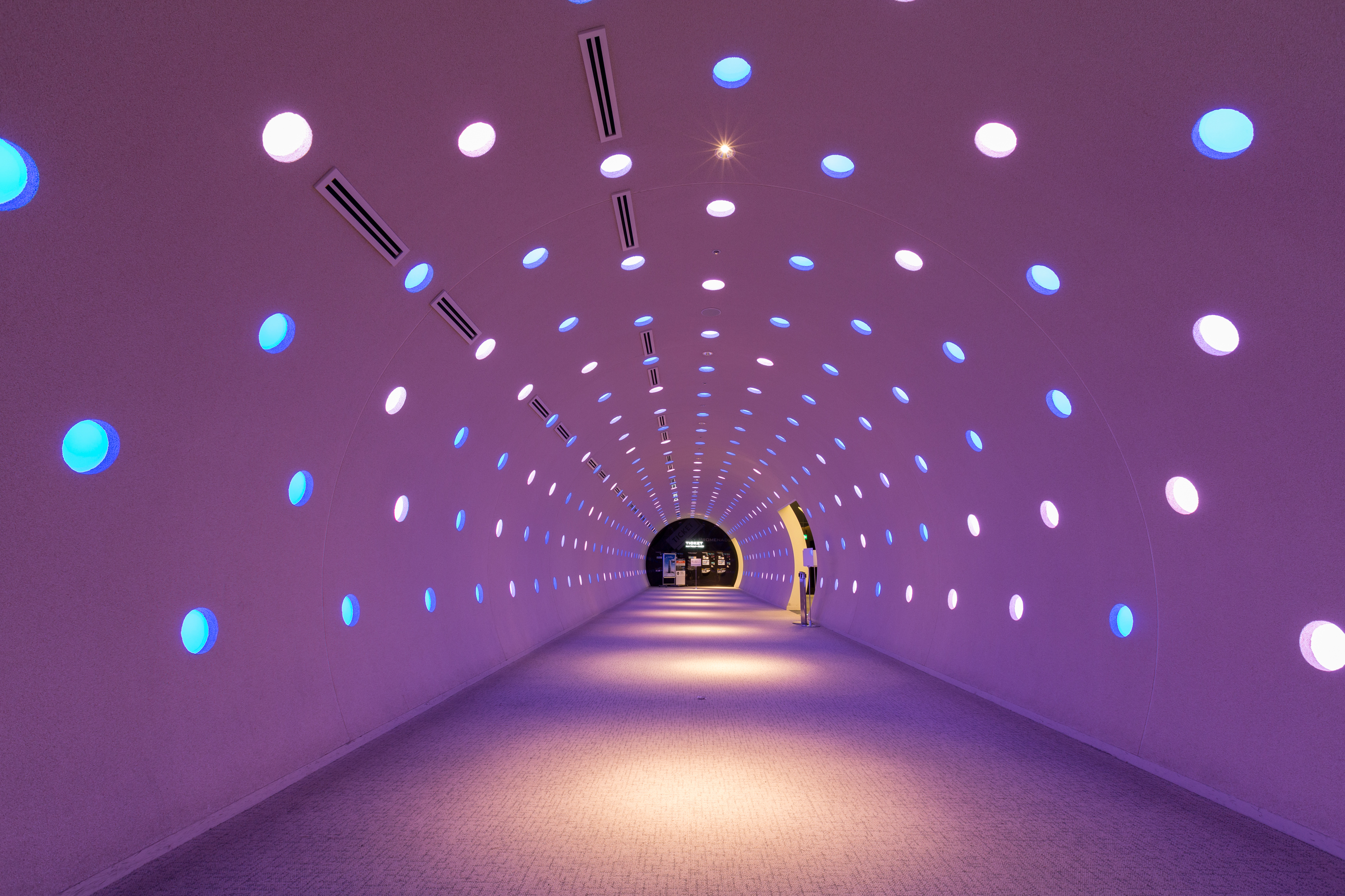 「ミッドランドスクエア スカイプロムナードの近未来的な通路」
