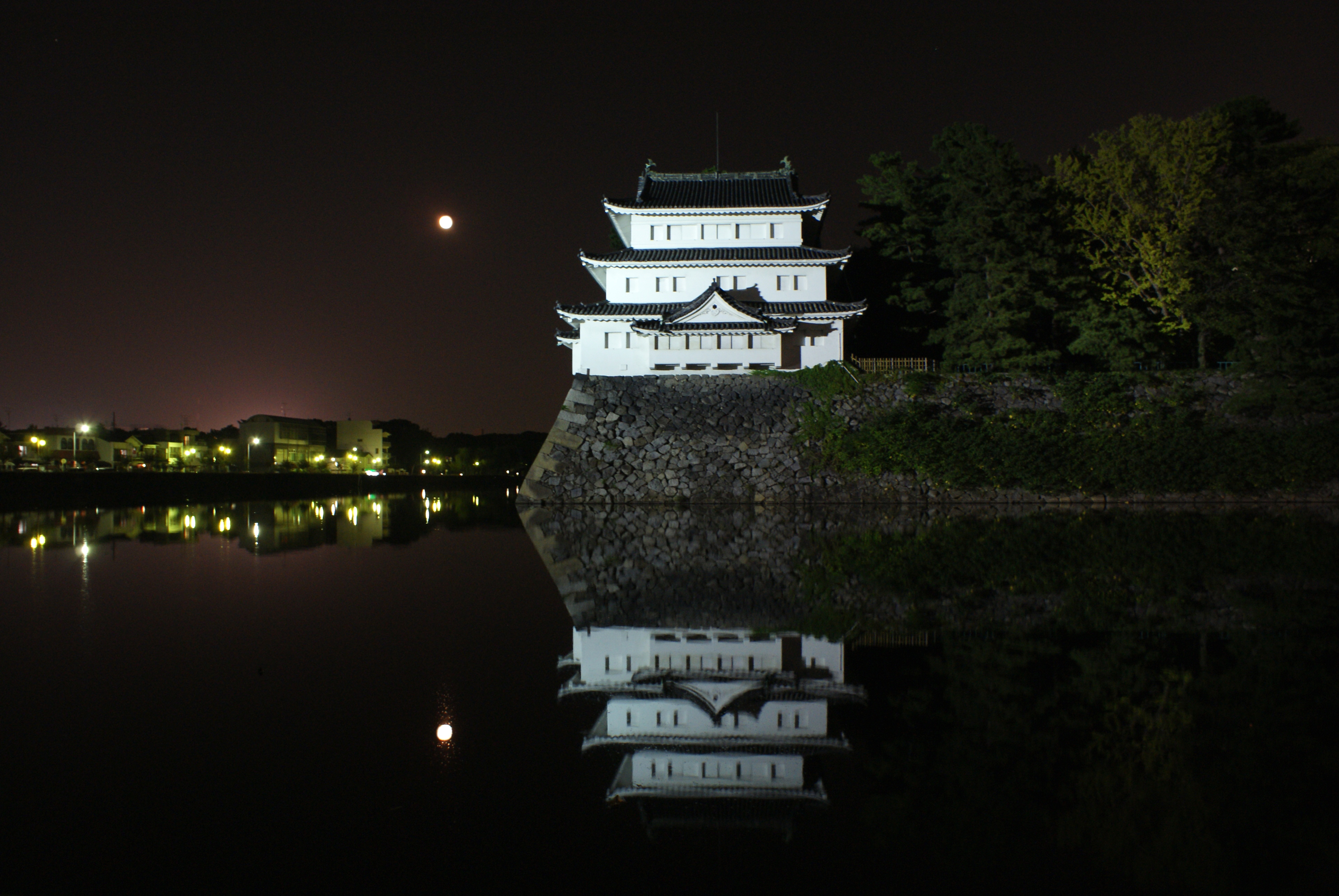 「お堀に浮かぶ櫓と月明かり」